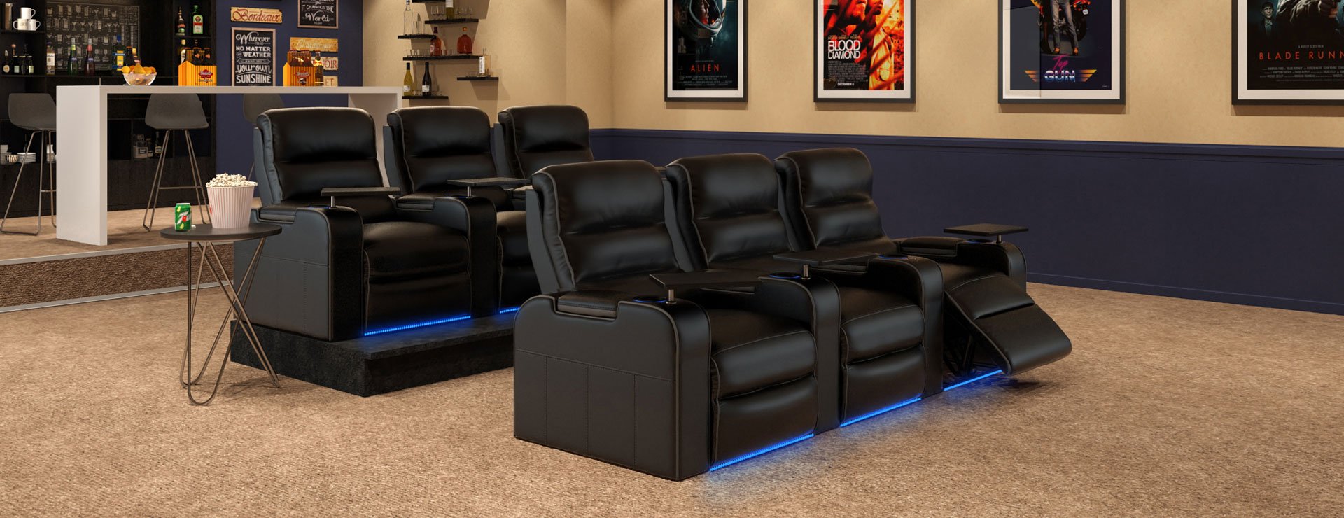 Offered in 2 widths of 32 inches and 38 inches so that you can build out the best width depending on how many seats you have per row. As a rule of thumb, a single seat will fit on the 38-inch width, then each additional seat will need the 32-inch width section. The home theater riser height can also be increased with our 14.5-inch riser platform in case you want three rows.