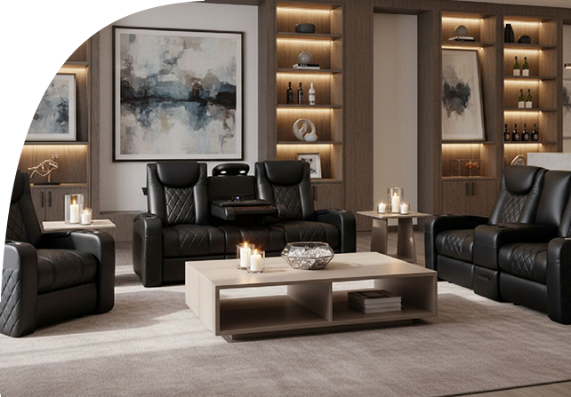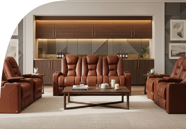 Modular or row seating, offered by Octane seating, are rows of recliners that can be configured to look like a sofa.