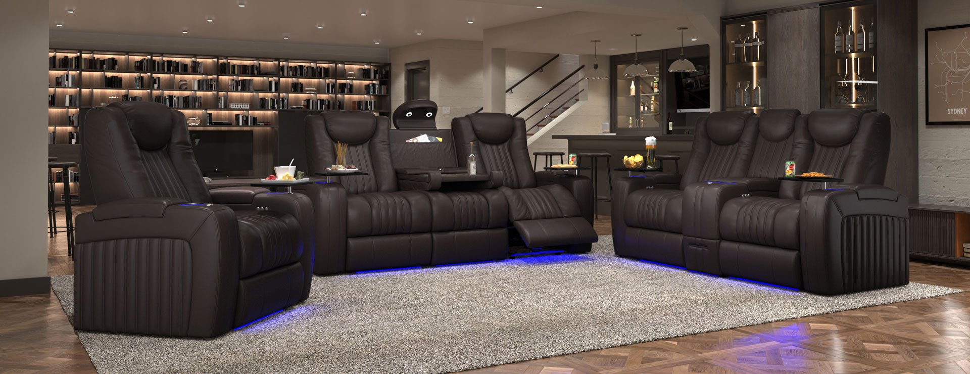 The front armrests and middle console contain the Octane Accessory Dock. There are a dozen accessories available from us, like the Popcorn & Snack Bowl, which is essential to make this experience worthwhile. The popcorn bowl is made with a 7.75-inch width, with a lot of room for heaps of popcorn or your number one snack. Tray tables are another worthwhile accessory, and there are many different kinds to choose from. Other add on accessories includes a phone holder, wine glass holder, cigar holder and much more!