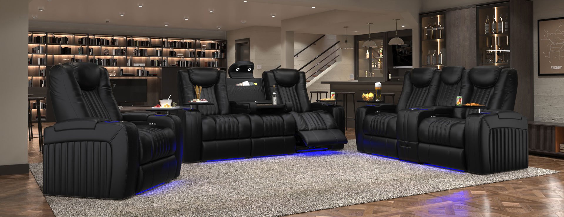 Designed with the utmost convenience in mind, the King flaunts a power reclining mechanism. With just a touch, you can effortlessly transition between reclining positions, providing an effortless escape into serenity. And the motorized headrest adds a delightful touch of personalization, allowing you to find the perfect angle for optimal relaxation. Imagine reclining back, adjusting the headrest, and stretching out in absolute bliss - the ultimate preparation for your personal cinema experience.