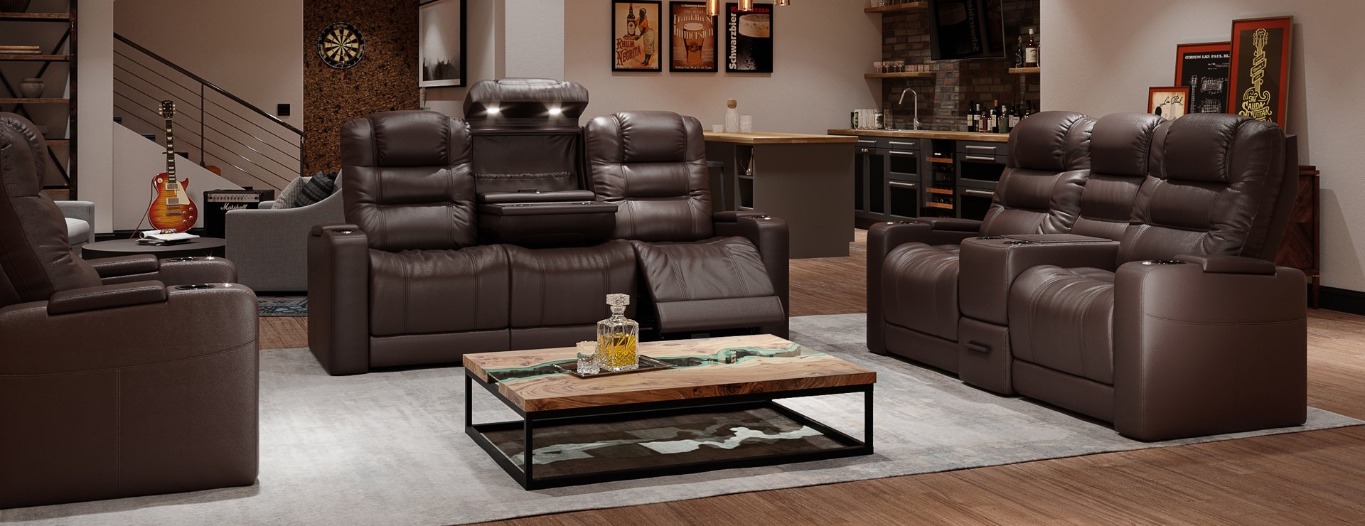 The reclining function of the loveseat opens up a multitude of seating positions and viewing angles so you can find the one perfectly suited for you. The loveseat is a big and tall model meaning anyone of any size can sit comfortably and enjoy this piece of home theater furniture.
