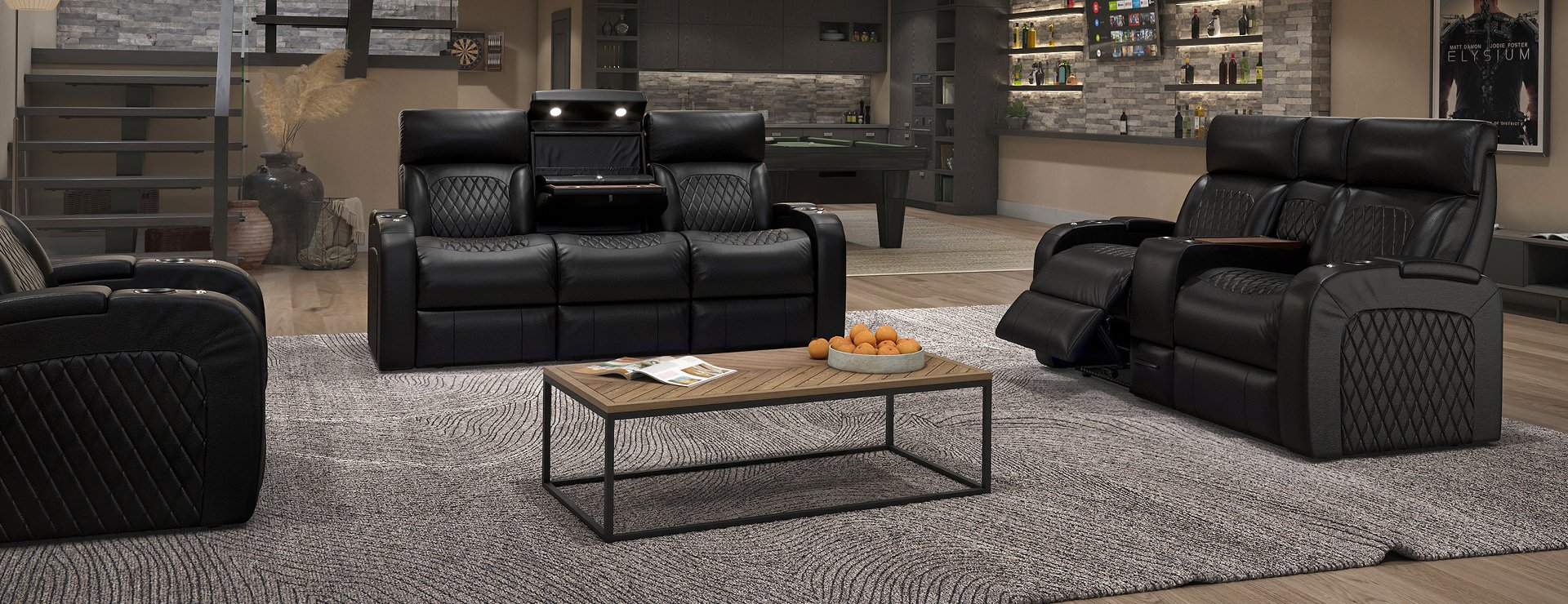 In addition to these incredible features, the Bliss also comes with Octane's LED lighting system which provides a soft blue glow around the cupholders and baserail, along with deep storage compartments in each arm. The seats come with 2 USB's on the inside arm allowing you to charge your electronics while lounging in style. At the front of each arm is an accessory dock, allowing you to add a whole host of lifestyle accessories such as a wine glass holder, phone holder, swivel tray tables and many other items. Last but not least, these chairs are constructed with premium pocketed coils so the seats never sag and always keep their shape and form, along with a top layer of gel infused memory foam, the premium way to manufacture furniture. The seats are then upholstered in premium top grain Italian leather. It's time to experience the true definition of luxury seating.