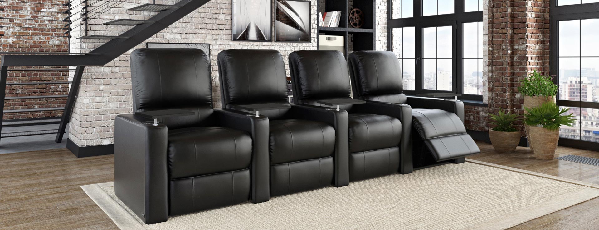 The Charger offers full head and neck support, along with very plush padding and a full chaise footrest, for complete head to toe comfort. The lower lumbar cushion in the seat back is designed to support your lower back for hours of relaxation and enjoyment. The seating core consists of 1.8 high-density foam wrapped around individually pocketed coils. This ensures your furniture won't sag over time. Upholstered in Octane's Ultra black bonded leather which is soft to the touch yet durable for everyday use by the whole family and easy to clean and maintain. Just like all Octane theater seating models, the Charger is constructed using kiln-dried hardwoods and a solid metal recline mechanism that is both effortless and silent, enabling a full range of recline motion.