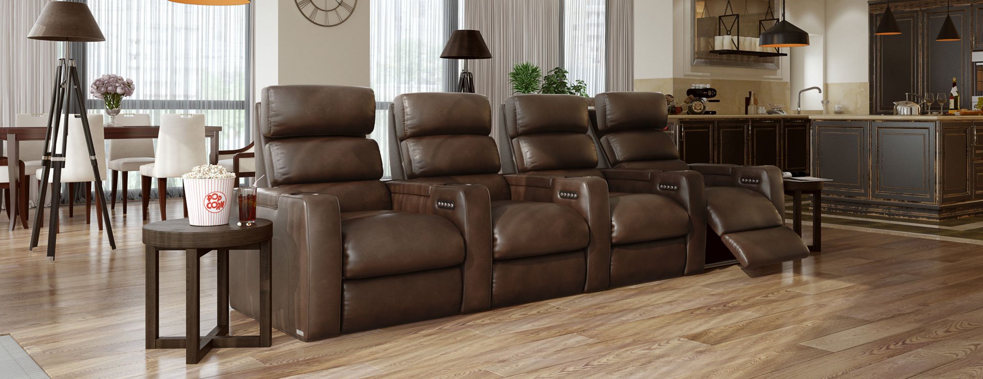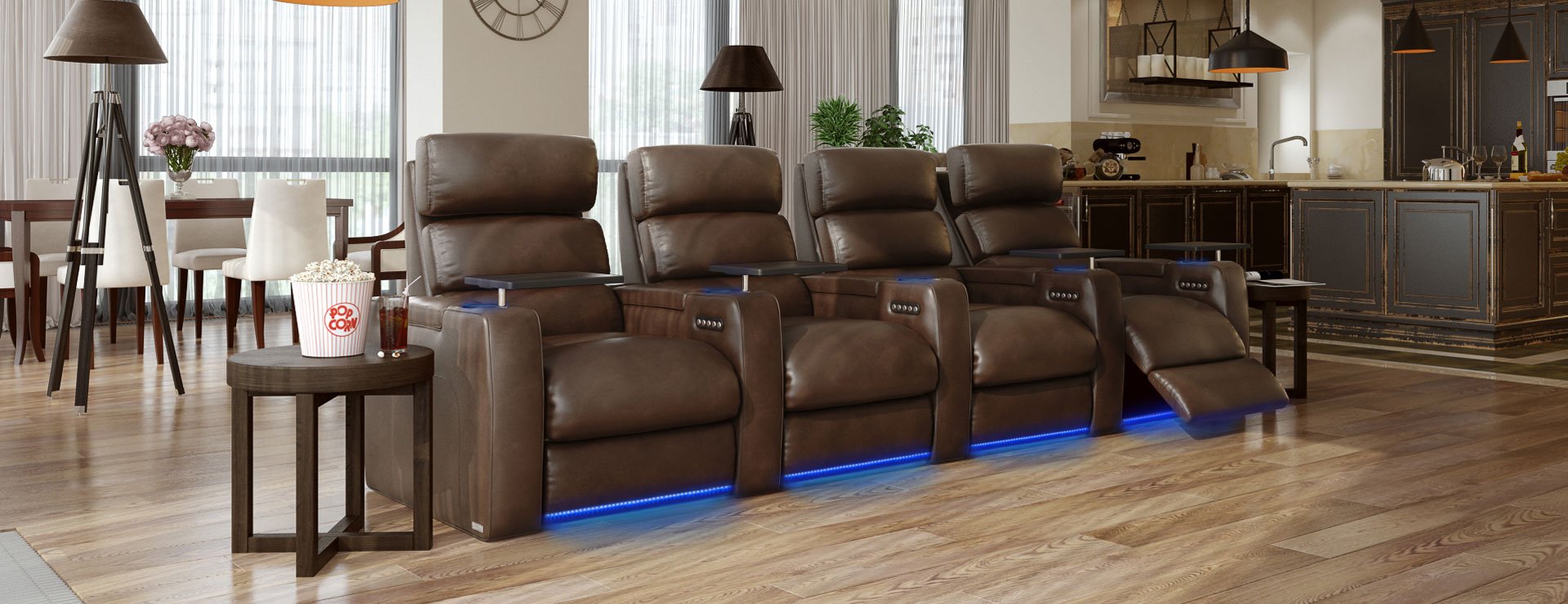 | Accessories (Optional) | Tray Tables, Phone Holder, Wine Glass Holder, Popcorn & Snack Bowl, iPad & Tablet Holder, Flex Reading Light, Cigar & Cigarette Holder, Hot Air Popcorn Maker, Tabletop Kettle Popcorn Maker, Removable Arms, Head & Neck Pillow |