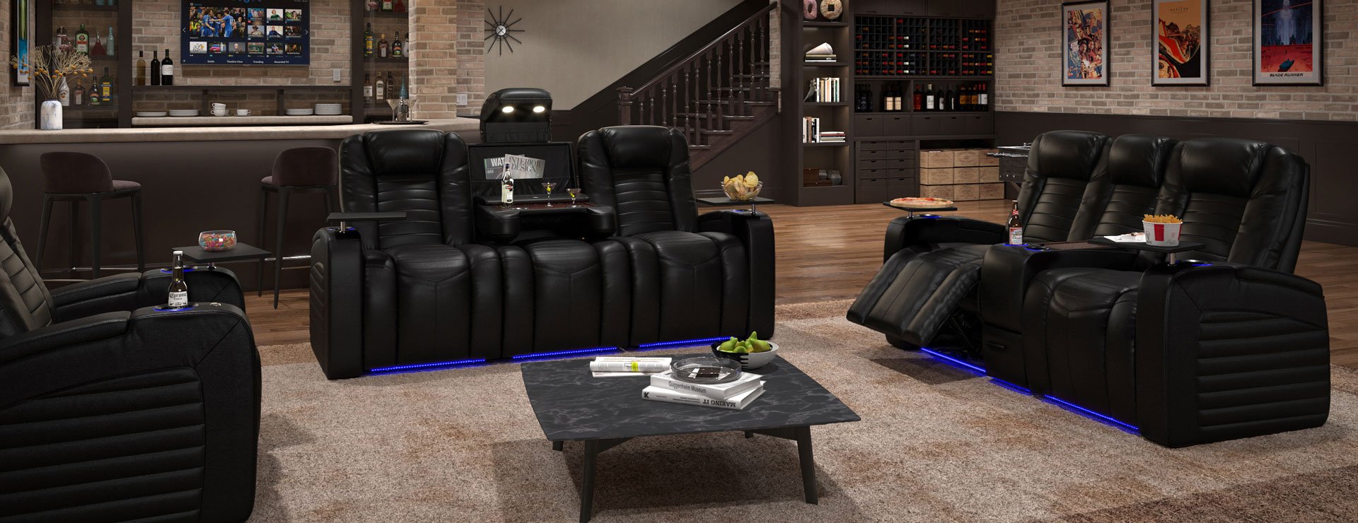 In addition to these incredible features, the Oasis also comes with Octane's LED lighting system which provides a soft blue glow around the cupholders and baserail, along with deep storage compartments in each arm. The seats come with 2 USB's on the inside arm allowing you to charge your electronics while lounging in style. At the front of each arm is an accessory dock, allowing you to add a whole host of lifestyle accessories such as a wine glass holder, phone holder, swivel tray tables and many other items. Last but not least, these chairs are constructed with premium pocketed coils so the seats never sag and always keep their shape and form, along with a top layer of gel infused memory foam, the premium way to manufacture furniture. The seats are then upholstered in premium top grain Italian leather. It's time to experience the true definition of luxury seating.