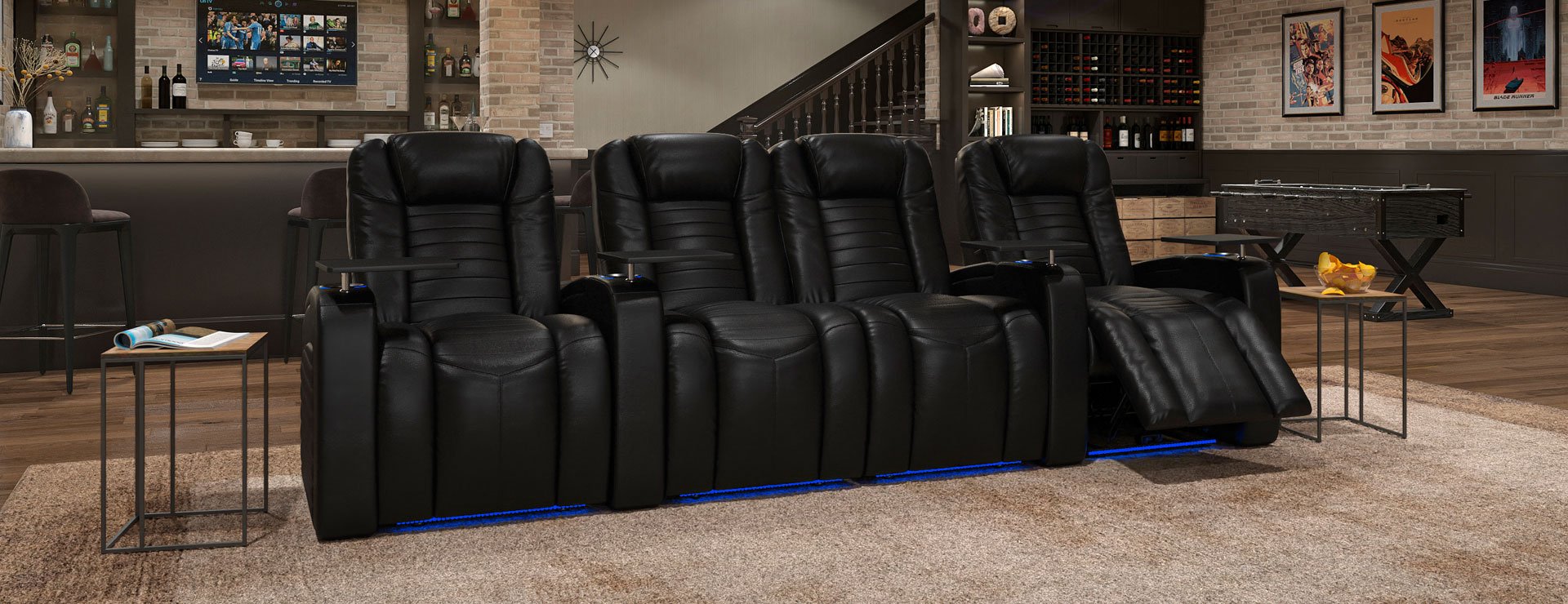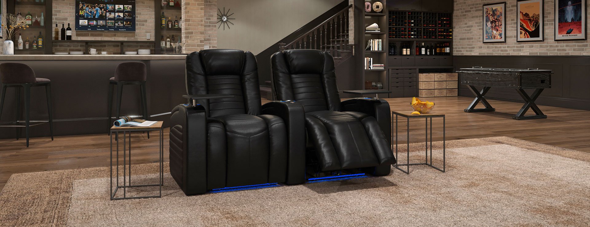 The Oasis also comes standard with Octane's signature features such as deep in-arm storage, USB chargers, ambient blue LED lighting on baserails and cupholders, and the Octane Accessory Dock. This exclusive dock allows uses to expand their seating experience with Octane's accessories such as tray tables, reading lights, popcorn bowls, cigar holders and more.