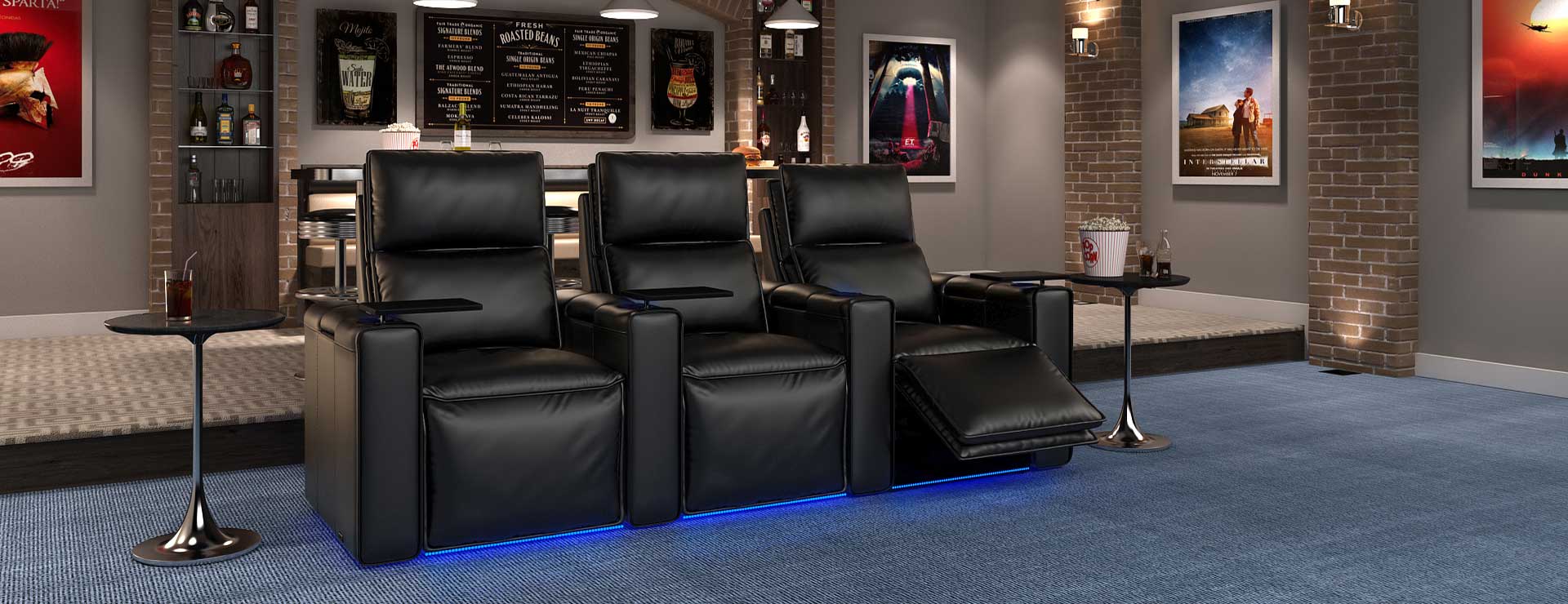 The Pillow HR Series comes with Octane's LED lighting package, which provides a soft blue ambient light from around the cupholders and along the baserail. Each chair is independently controlled so that you can turn them on or off with ease. Each arm also have a deep storage compartment, along with an accessory dock located in front of the cupholders. Octane offers over a dozen lifestyle accessories such as a popcorn bowl, wine glass holder and many other exciting add ons.