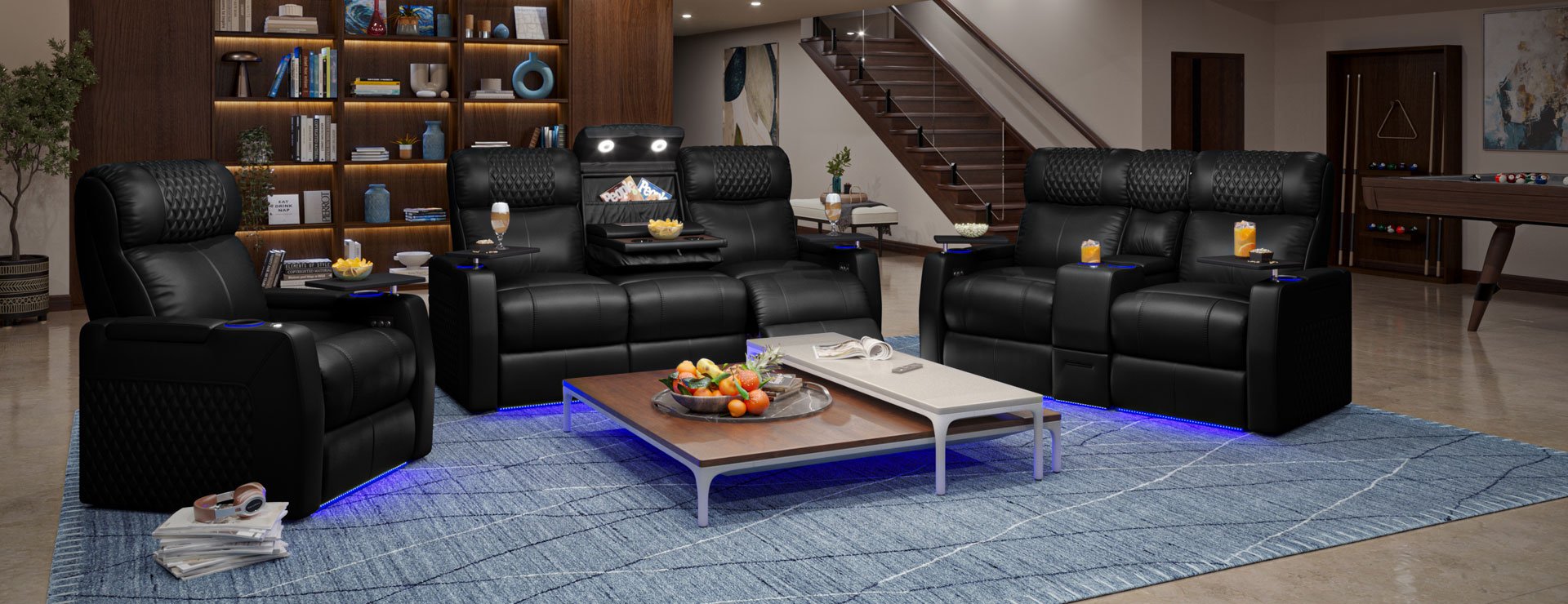 And the fun doesn't stop with the sofa. The Solace Sofa series also offers a sofa drop-down console and a loveseat with a middle console. Both options come with tons of features and accessories, including USB charging ports, power outlets, storage space, and more.