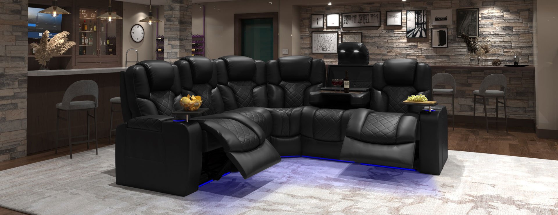 | Accessories (Optional) | Tray Tables, Phone Holder, Wine Glass Holder, Popcorn & Snack Bowl, iPad & Tablet Holder, Flex Reading Light, Cigar & Cigarette Holder, Hot Air Popcorn Maker, Tabletop Kettle Popcorn Maker, Removable Arms, Head & Neck Pillow, Lumbar Pillow |